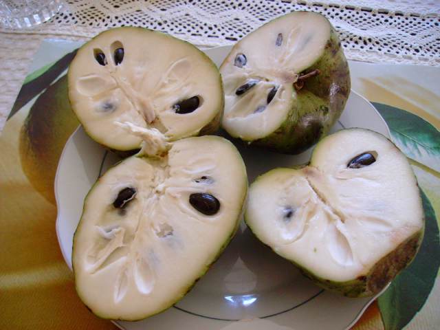 Menos mal que los parientes trajeron otras cosas para compensar la desdicha: unas tiernas yucas amarillas que en pocos días me zampé como un niño engolosinado, ideales para acompañar unos asados a la cazuela. Pero sobre todo, el entusiasmo se me recompuso al ver unas subyugantes chirimoyas, tan maduras que había que dar fin en un par de días a lo sumo.